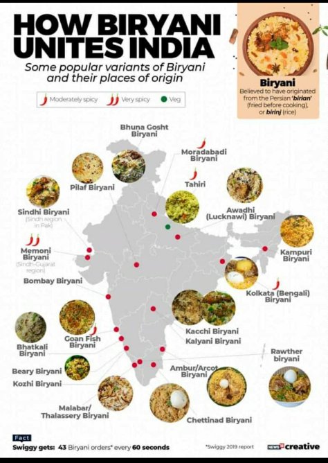 24. Tamil Nadu– While the Nawabs of Arkot influenced the famous Ambur / Vaniyambadi biriyani; the thalapakkatti family created the Dindigul biriyani and the business community of Chettiars brought in their knowledge of spices giving form to the Chettinad biriyani.