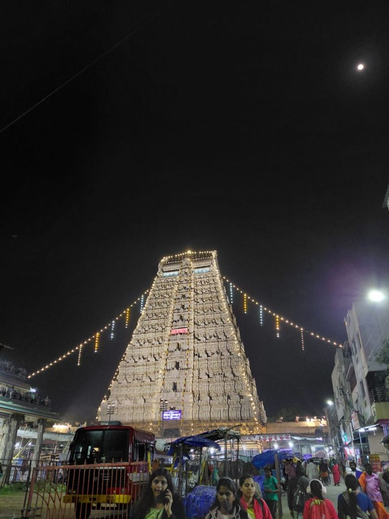 We also got lucky that we saw the flames deepam atop the Arunachalar hill, all the décor of the town and all the decoration inside the temple that had been done for the annual festival.
