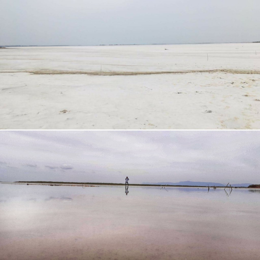 Top: Lake Pulicat enroute to SHAR in winter; Lake in Summer