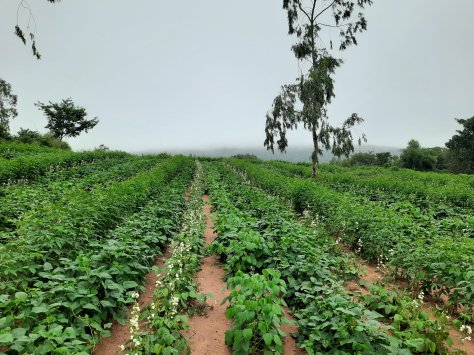 This is yet another of my family’s random drive day, thanks to Corona unlock weekends… This time, our random pick was in the direction of Bannerghatta forest. We drove past Jigani marble market towards Ragihalli state forest. We drove around randomly and stopped wherever we thought we had a good vantage point. The place being around the fringes of a national park and in the fertile stretch of countryside, there was lots and lots of greenery all along. We stopped by at the IIM-B new campus plot near Mahanthalingapura from where we got a distant view of the ‘Ragihalli Betta’. (Remember our drive to Gullahatti Kaval? We had the view of the hill from a different direction- Click here to read the complete article) The cloudy and cool weather here made everything perfectly amazing, with a great combination of bright green and dull grey. With permission of a millet farm owner present there, we sat in his farm overlooking the green valley for a while, with some packed food and water.